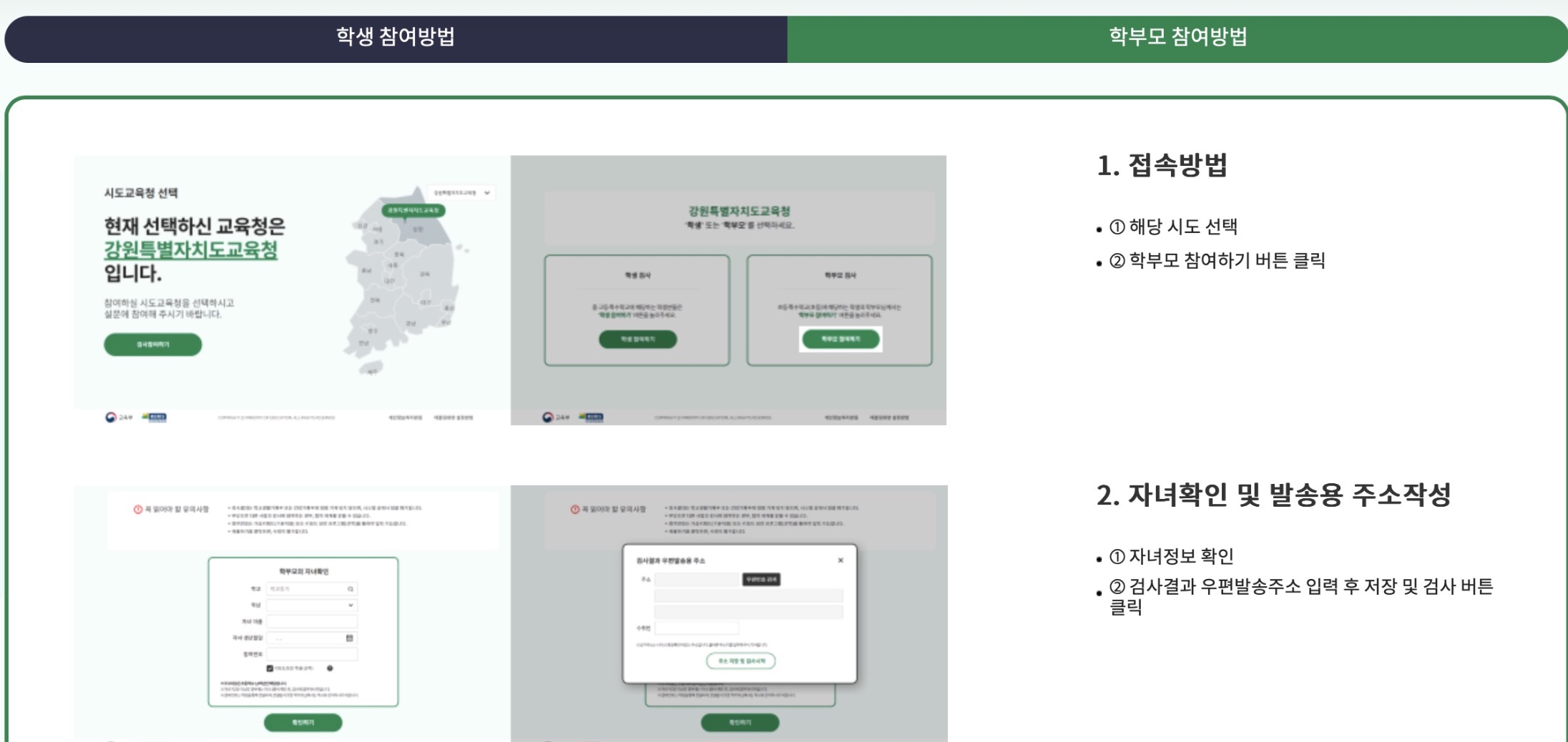 로그인 후 해당하는 역할(학생/학부모)을 선택합니다. - 본인 인증 후 설문 응답